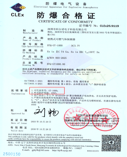 科尔诺GT1000-VOC气体检测仪采用本质安全电路设计,具有防尘、防爆性能,抗静电,抗电磁干扰,这些特性使GT1000能够适应石油厂的复杂电磁环境,确保监测数据不受干扰。设备重量仅0.5kg,小巧轻便,便于操作人员随身携带进行巡检作业。可配置7200mAh可充电聚合物电池保证了至少12小时以上的续航能力,足以支持全天候的监测任务。设备的防护等级达到IP67,工作温度范围达到-20℃至60℃,这意味着它能够在石油厂常见的低温环境或高温管道附近正常工作。同时,GT1000-VOC严格遵循石油化工行业标准,符合GB/T3836.1-2021《爆炸性环境 第1部分:设备通用要求》和GB/T3836.4-2021《爆炸性环境 第4部分:由本质安全型“i”保护的设备》的标准要求。